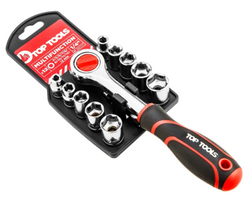 ( ilość produktów: 913 )Zestaw kluczy nasadowych Top Tools z grzechotką 1/2", zestaw 8 elementów.