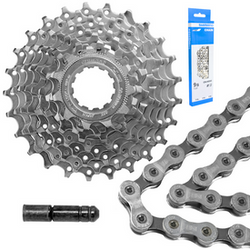 Zestaw Kaseta rowerowa Shimano CS-HG400 9-rzędowa + Łańcuch KMC X9.93 ze spinką + Olej Top Kett 100 ml