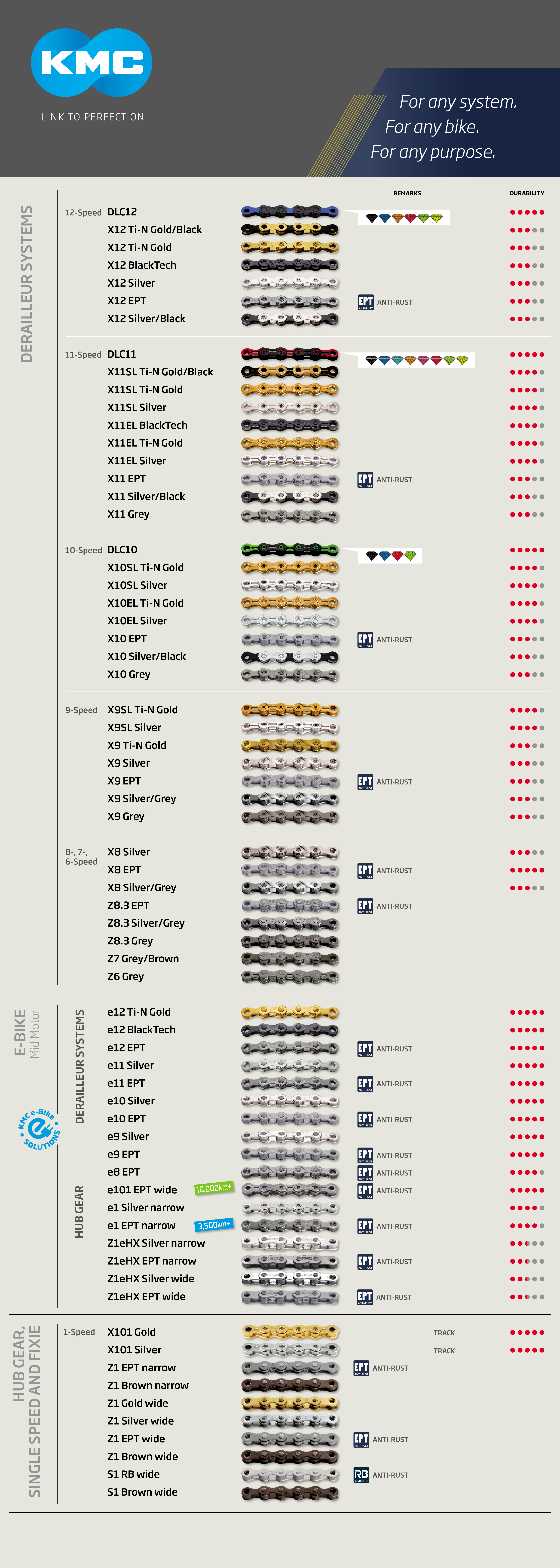 Dla ułatwienia wybrania odpowiedniego łańcucha KMC przygotowało specjalną tabelę:
