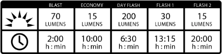 Lampka może pracować maksymalnie 20 godzin w trybie 15 lm, przy maksymalnej mocy 200 lm akumulator pozwoli na pracę przez 6,5 godziny.
