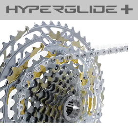 Układ HYPERGLIDE+ został opracowany z myślą o kolarstwie górskim nowej generacji, aby rowerzysta mógł bezustannie pedałować w praktycznie każdym terenie. Udoskonalony układ napędowy i dedykowany łańcuch gwarantują szybszą zmianę przełożeń, wydajniejsze przenoszenie mocy oraz większą stabilność łańcucha niż kiedykolwiek wcześniej.
