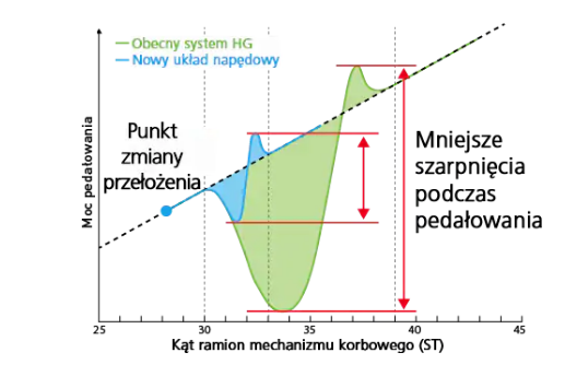 - Pewna zmiana przełożeń w górę i w dół w obu kierunkach poprawia koncentrację rowerzysty oraz przyśpieszenie.