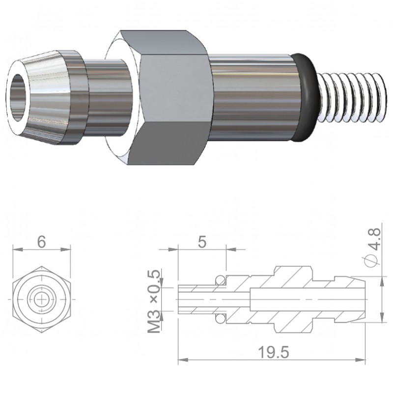 Średnica gwintu 3 mm. Na gwincie umieszczony jest gumowy o-ring uszczelniający połączenie śruby z hamulcem.