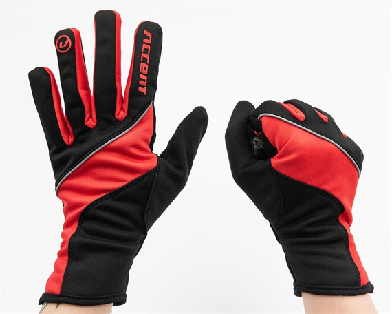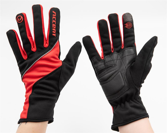 Rękawiczki z długimi palcami Accent Windstar ocieplane czarno-czerwone, rozmiar S