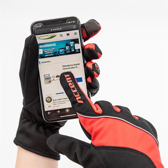 Zewnętrzna warstwa materiału na palcu wskazującym jest przystosowany do używania ekranów dotykowych.