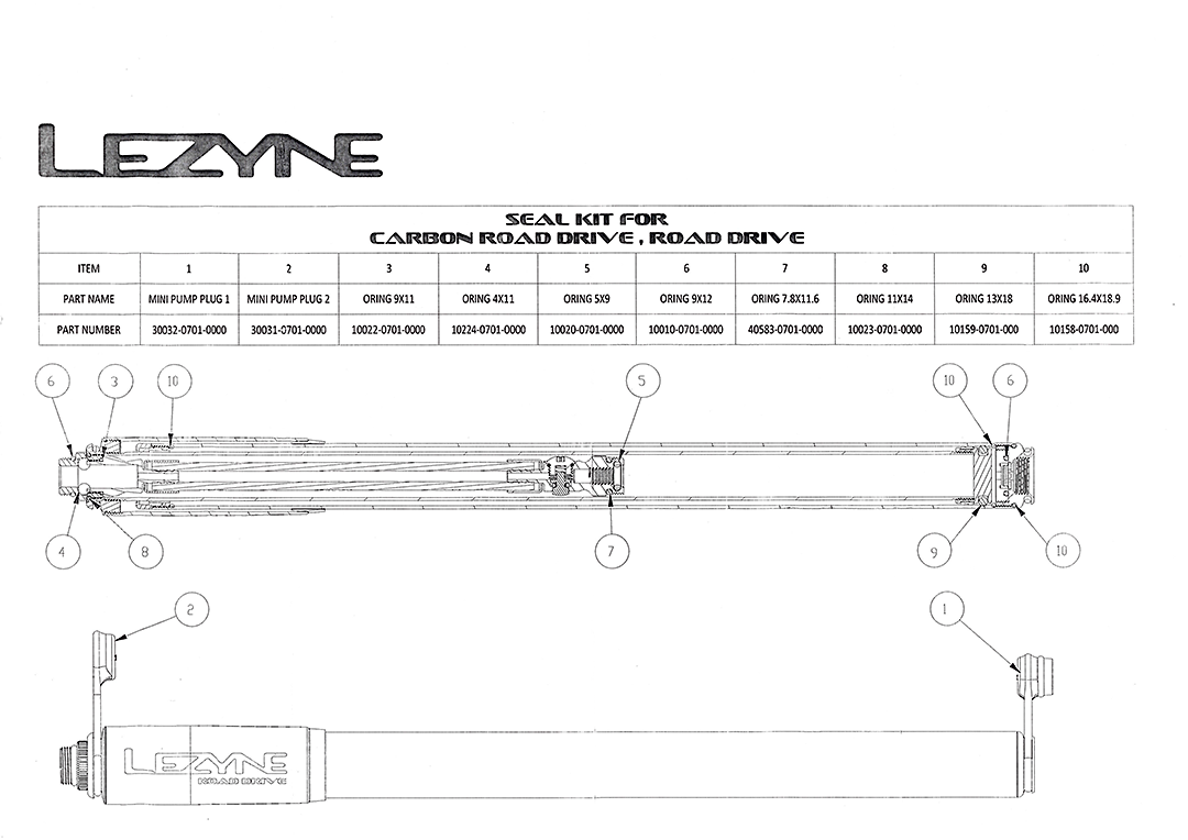 Kompletny zestaw uszczelek do pompki Lezyne Road Drive / Carbon Road Drive.