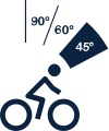 Pozycja Athletic 45° - Bardziej pochylona pozycja poprawia aerodynamikę, aktywuje mięśnie brzucha w celu stabilizacji tułowia oraz ułatwia podjazdy.