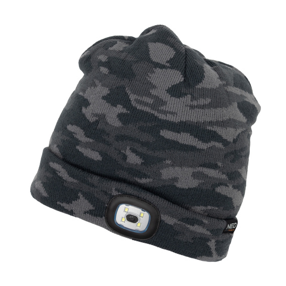 Czapka dwuwarstwowa z wbudowaną latarką LED, ładowanie USB, Camo Urban