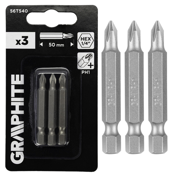 Końcówki wkrętakowe PH1 Graphite 1/4", o długości 50 mm, 3 sztuki w zestawie.